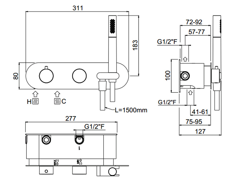 ILTONDO Внешняя часть встраиваемого термостатического смесителя для душа на 2 выхода с душ.гарнитуром, цвет хром