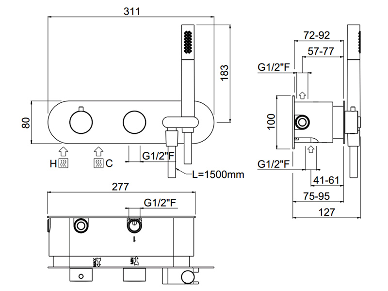 ILTONDO Внешняя часть встраиваемого термостатичекого смесителя с душ.гарнитуром, цвет хром