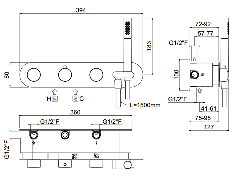 ILTONDO Внешняя часть встраиваемого термостатичекого смесителя с душ.гарнитуром, цвет хром