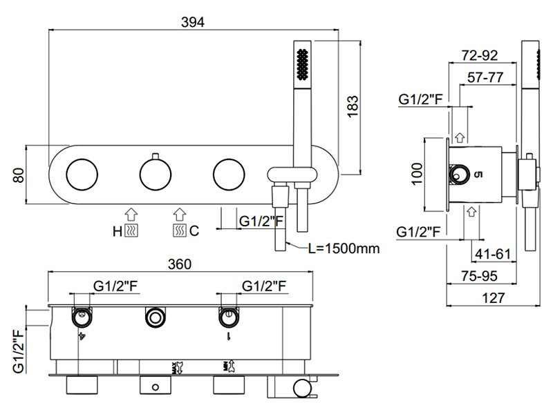ILTONDO Внешняя часть встраиваемого термостатичекого смесителя с душ.гарнитуром, цвет хром