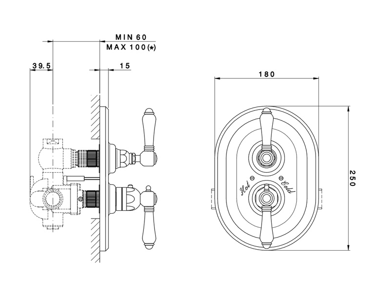 D.ANGLAISES Внешняя часть встраиваемого термостатического смесителя , цвет bronzato