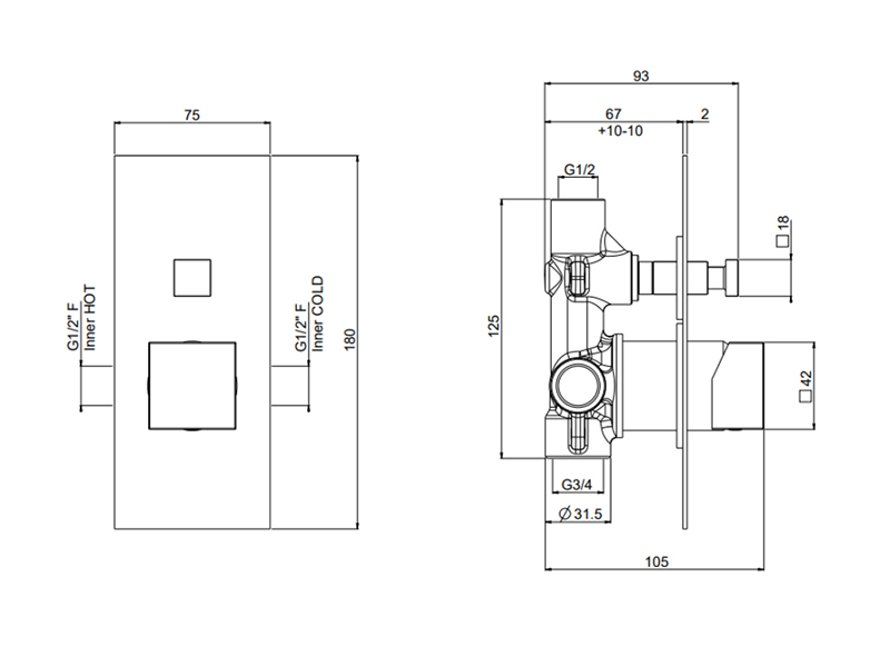 Внутренняя часть встраиваемого смесителя для душа