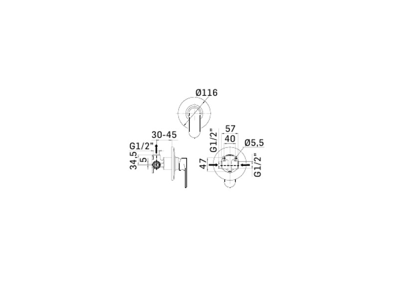 Внутренняя часть встраиваемого смесителя для душа Mamoli 370300000021 на 1 выход, цвет хром.