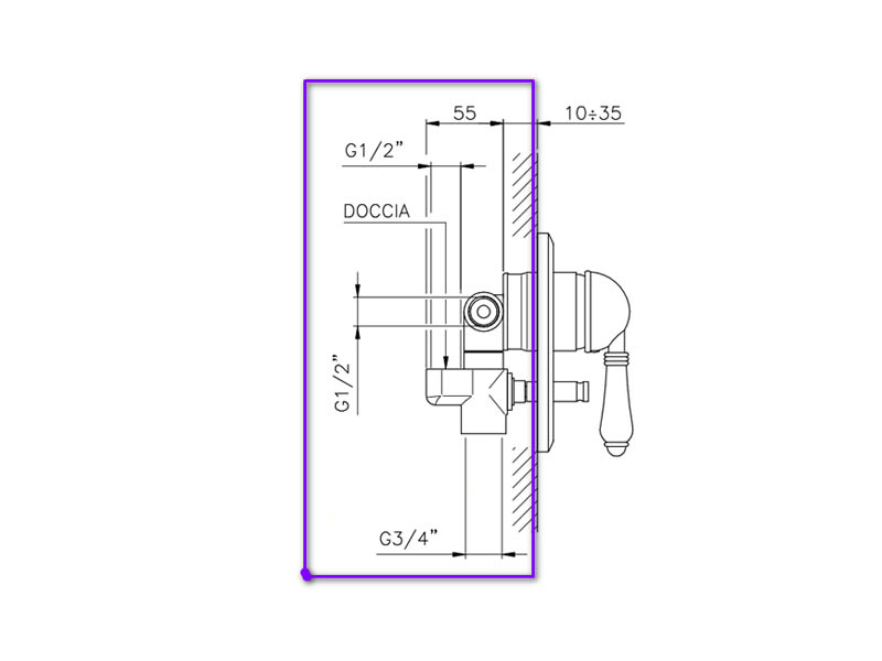 Внутренняя часть встраиваемого смесителя для душа с переключателем