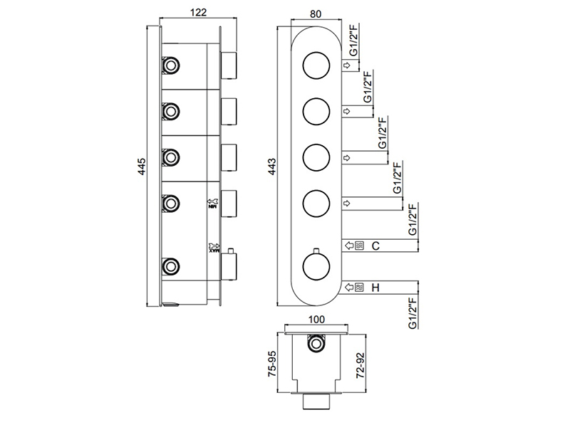 Внутренняя часть термостатического смесителя на 4 выхода