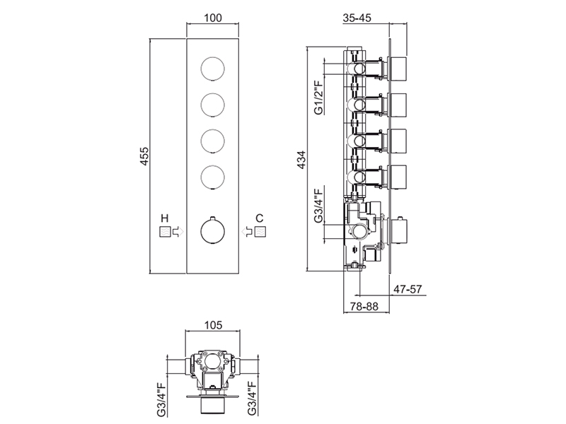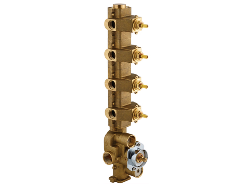 Внутренняя часть термостатического смесителя на 4 выхода, цвет хром