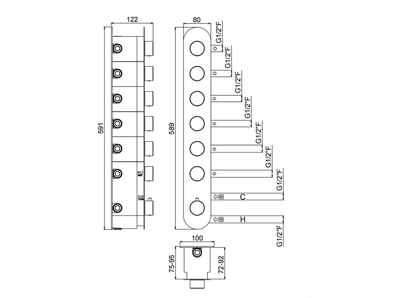 Внутренняя часть термостатического смесителя на 6 выходов