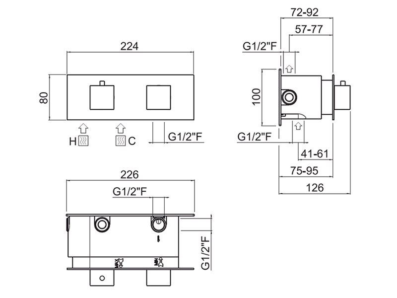 Внутренняя часть термостатического смесителя на 2 выходов, цвет хром