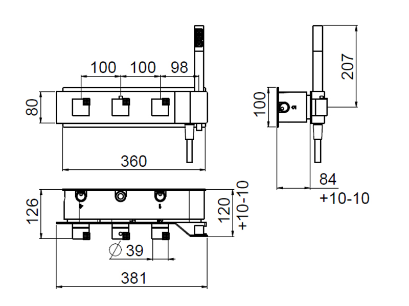 Внутренняя часть термостатического смесителя для душа на 4 выхода