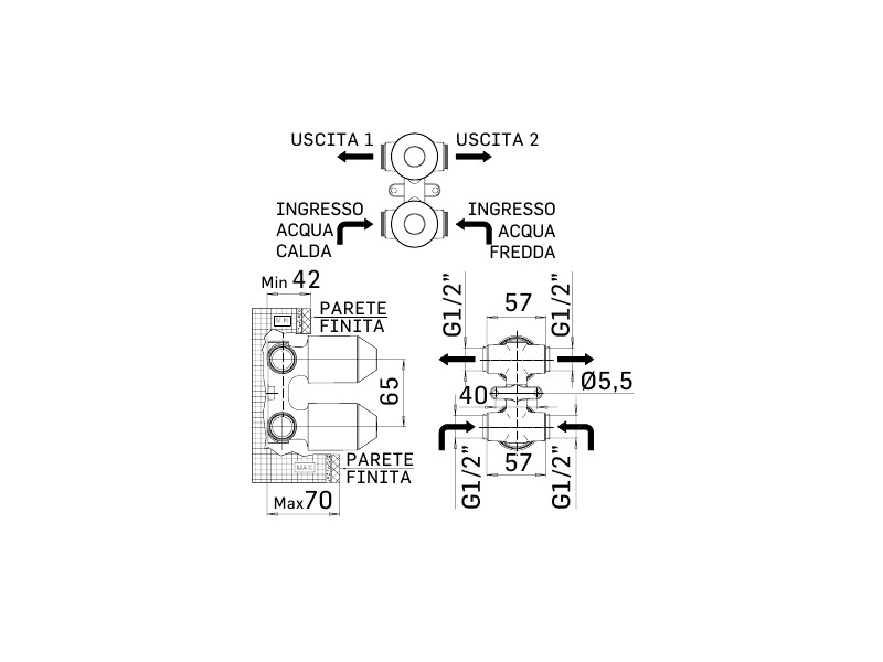 Внутренняя часть встраиваемого смесителя для душа Mamoli Sadler 270300000021 на 2 выхода, цвет хром.