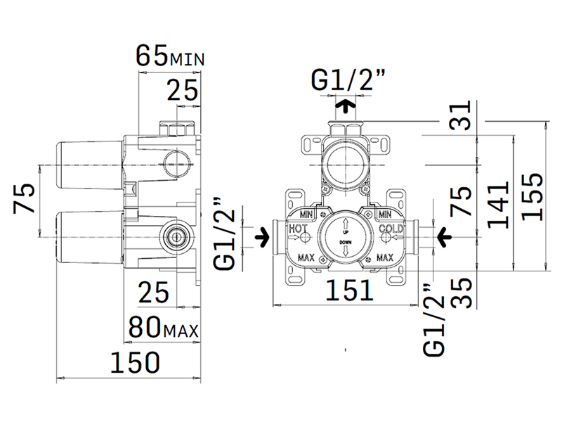 PICO Внутренняя часть термостат,встраиваемого смесителя для душа, 1вых,unpolished