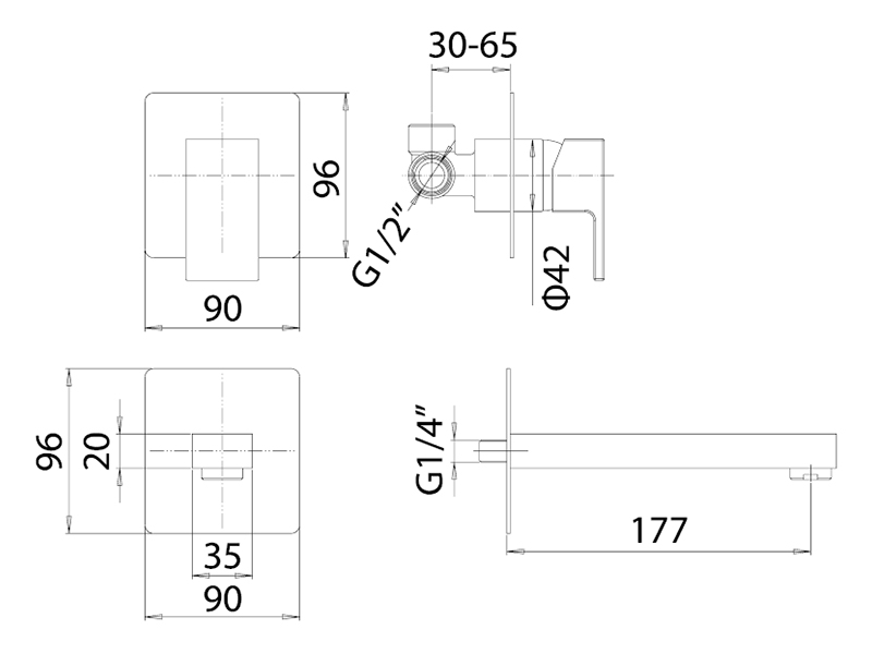 MAMOLI FEEL 48470000D121 Встраиваемый смеситель для раковины настенный в комплекте с внутренней частью, излив 177 мм. Цвет Chrome.