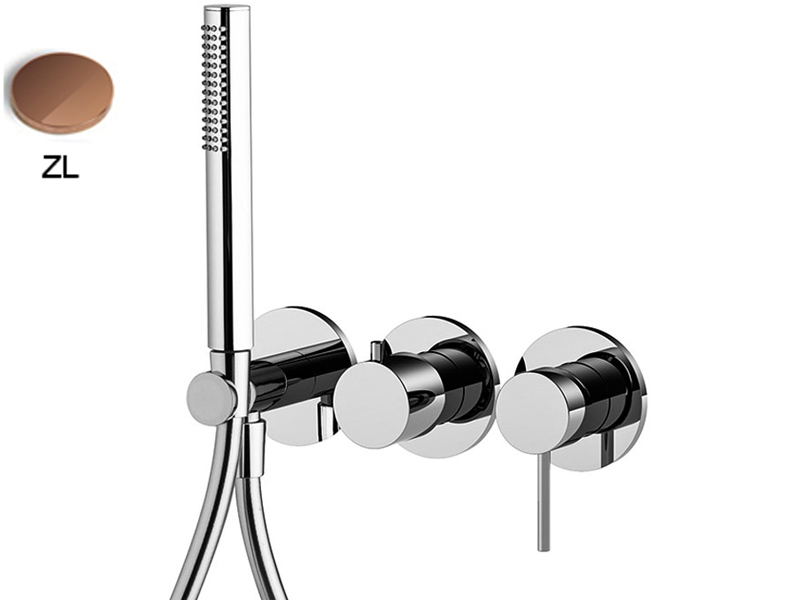 Встроенный смеситель для душа FIMA CARLO FRATTINI SPILLO UP F3049WX8ZL на 2 источника с душевым комплектом, только внешняя часть: настенный кронштейн с водоснабжением, ручной душ ABS с защитой от извести анти-кальк, гибкий шланг хромалюкс 1500 мм, внутренняя часть арт. F3400W заказывается отдельно, цвет янтарная бронза.