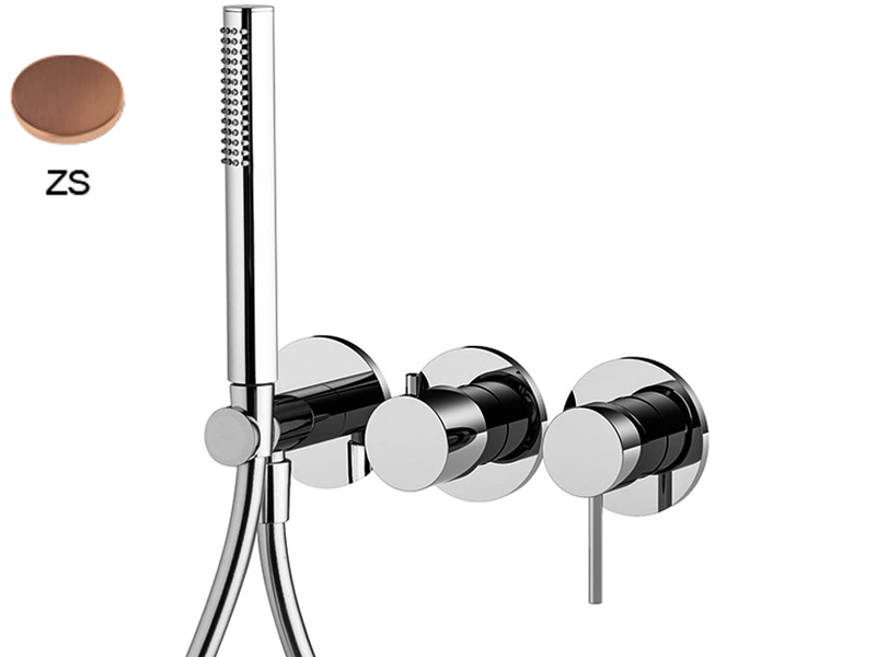 Встроенный смеситель для душа FIMA CARLO FRATTINI SPILLO UP F3049WX8ZS на 2 источника с душевым комплектом, только внешняя часть: настенный кронштейн с водоснабжением, ручной душ ABS с защитой от извести анти-кальк, гибкий шланг хромалюкс 1500 мм, внутренняя часть арт. F3400W заказывается отдельно, цвет брашированная янтарная бронза.