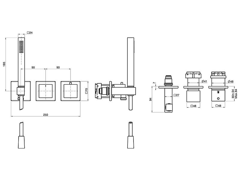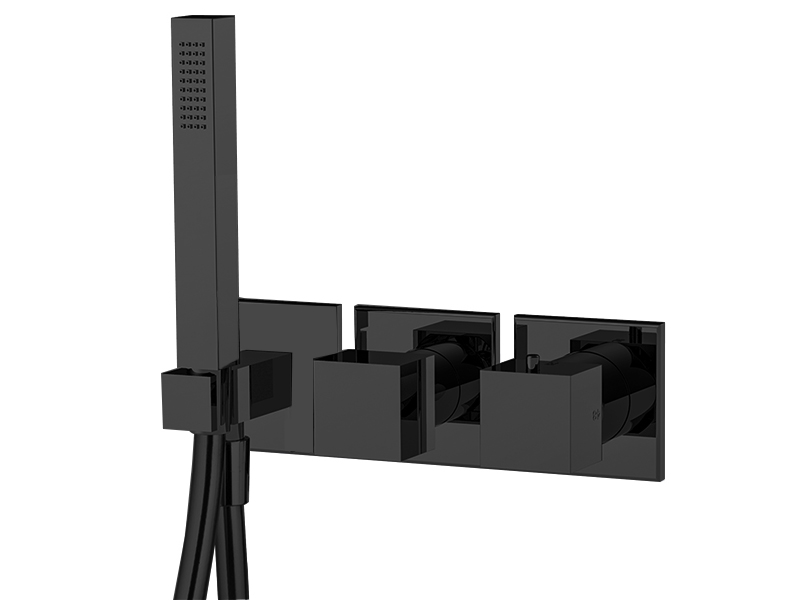 Встроенный термостатический смеситель для душа Fima Carlo Frattini FIMATHERM F3989WX9NS на 2 источника с душевым комплектом, цвет черный матовый: