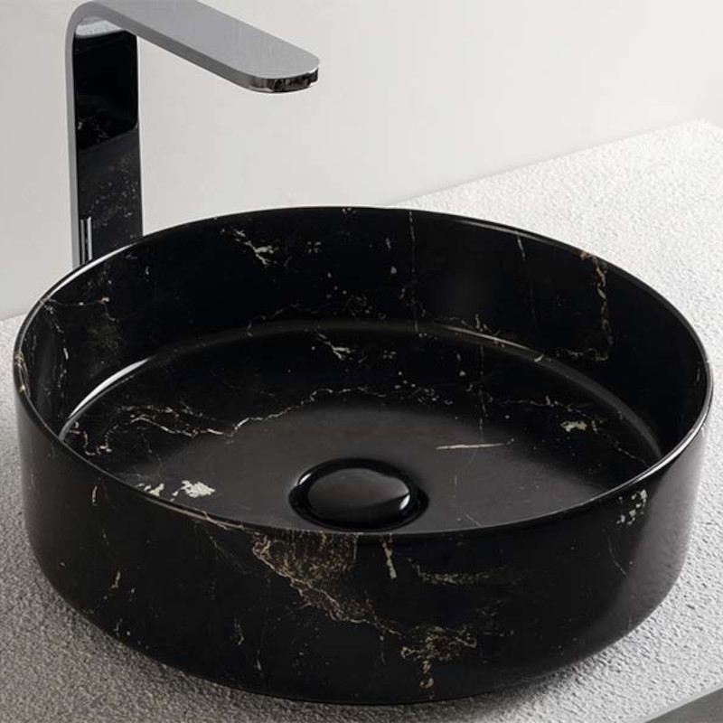 Выпуск для раковины черный с мраморной крышкой Nero Marquina