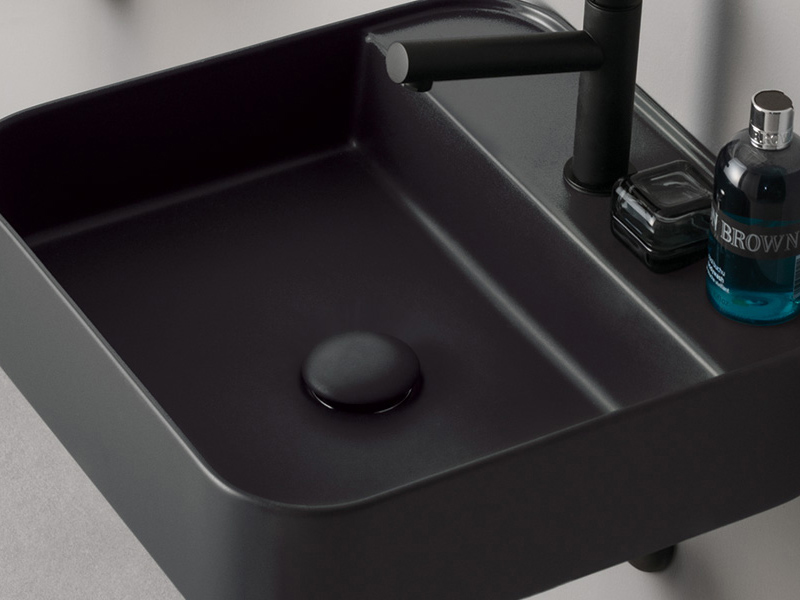 Выпуск для раковины самотечный Cemento с керамической пробкой Gloss Black