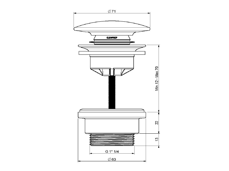 Выпуск click clack/свободного тока HATRIA A0Y7A825 с керамической крышкой, диаметр 71 мм, цвет белый матовый.