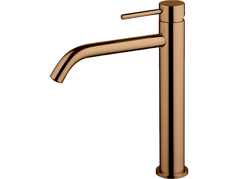Высокий смеситель на раковину SPILLO UP F3031LXSOS, брашированное золото, с двумя гибкими шлангами, донный клапан click-clack 1``1/4. Высота смесителя 240 мм, длина излива 168 мм.