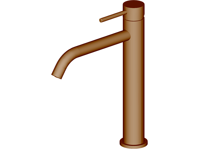 Высокий смеситель на раковину SPILLO UP F3031LXSZS, брашированная янтарная бронза, с двумя гибкими шлангами, донный клапан click-clack 1``1/4. Высота смесителя 240 мм, длина излива 168 мм.