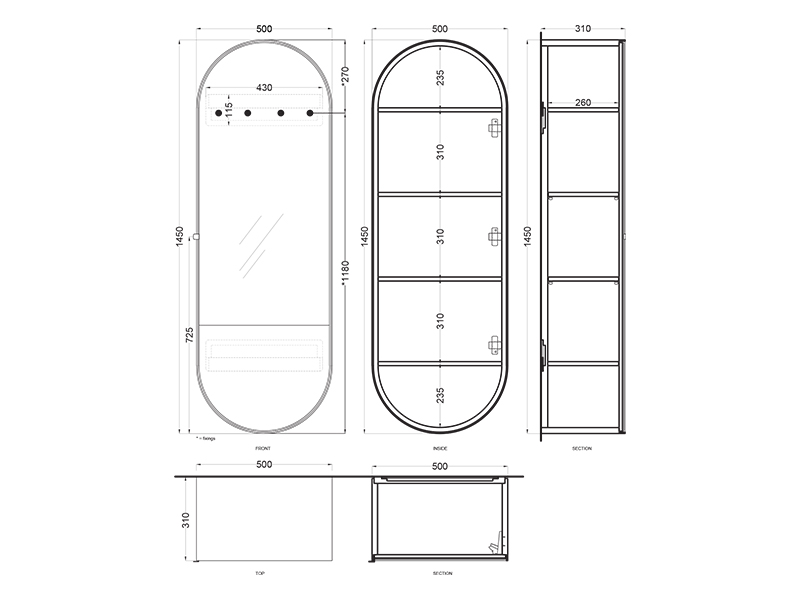 CIELO SPELCL NM ELIO Зеркальный шкафчик овальной формы для ванной комнаты с окрашенным корпусом. Реверсивный, открывание возможно с левой или правой стороны, цвет MATT BLACK (черный матовый).