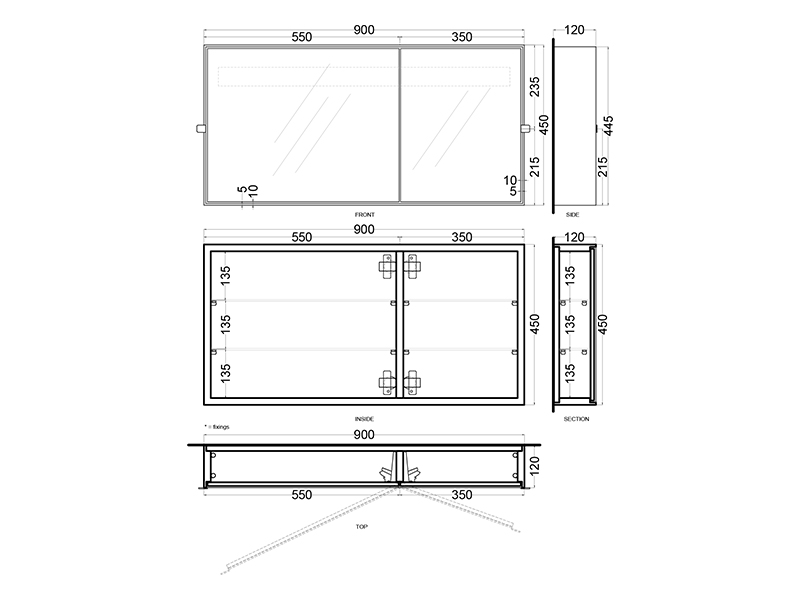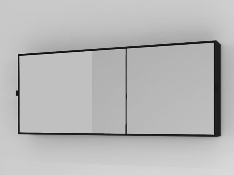 CIELO SPSB NM SIMPLE BOX Зеркальный шкаф. Лакированный крашенный корпус, деревянные полки, зеркальные дверцы (левая и правая) ручки на дверцах. Цвет matt balck