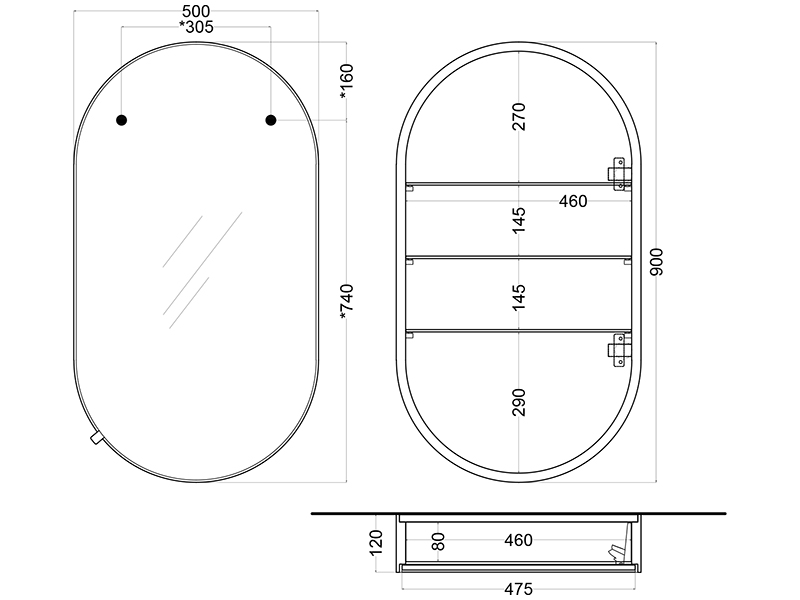 CIELO CASPCO NM CATINI Зеркальный шкаф овальный с крашенной рамой, цвет Matt black