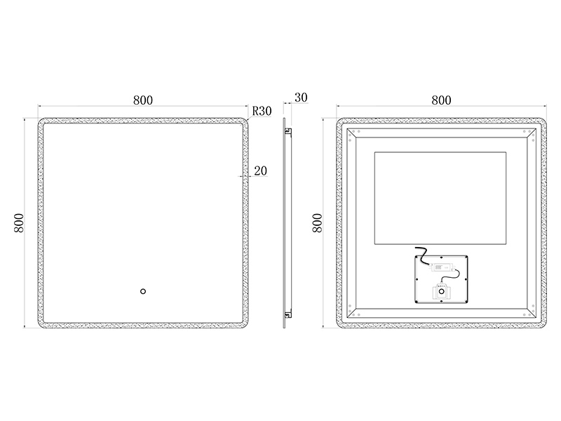 - Сенсорная система управления, которая позволяет сделать выбор цветовой температуры светодиодной подсветки зеркала: 2700K (теплый свет), 4000К (нейтральный свет), 6400K (холодный свет).