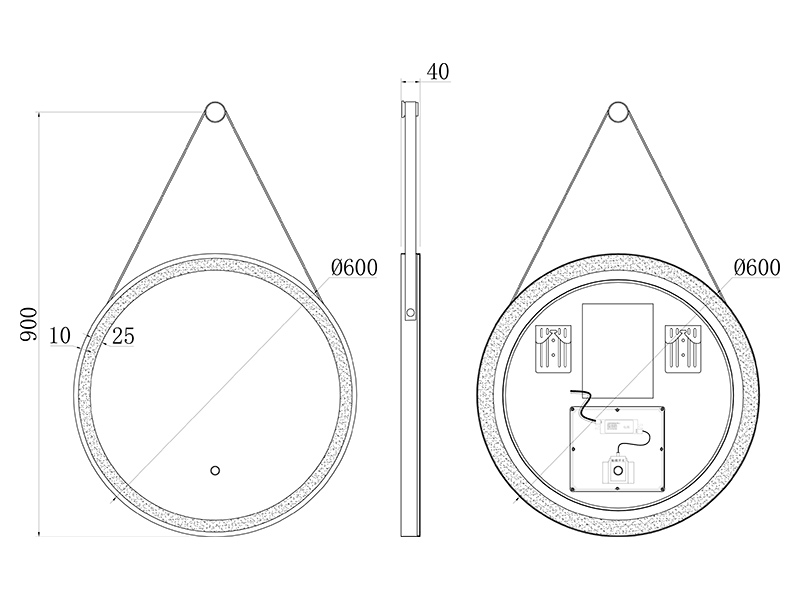 - Сенсорная система управления, которая позволяет сделать выбор цветовой температуры светодиодной подсветки зеркала: 2700K (теплый свет), 4000К (нейтральный свет), 6400K (холодный свет).