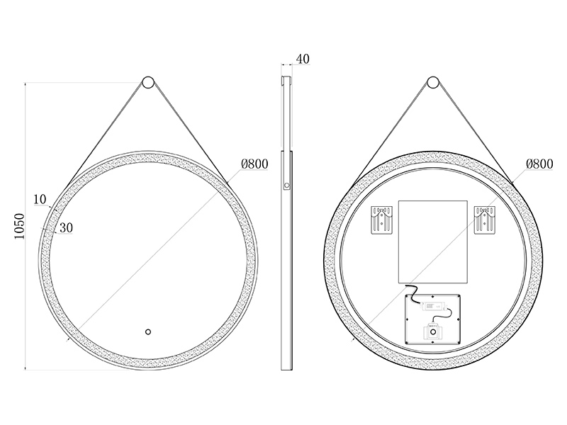 Зеркало c подсветкой на ремне UNI-FLOW M642 d800, круглое диаметром 80 см:
