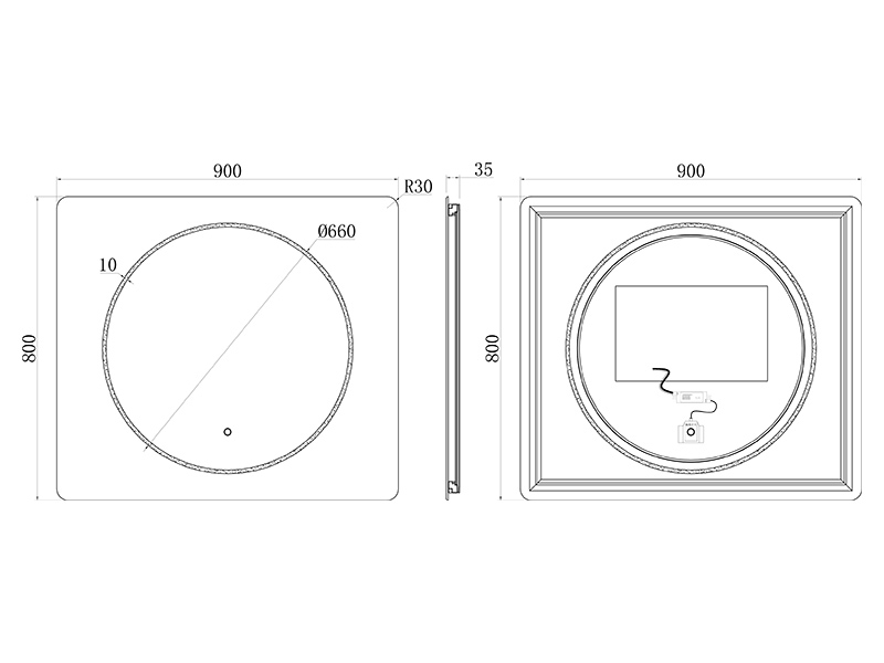 Зеркало c подсветкой UNI-FLOW M639 900*800, прямоугольное 900x800 мм: