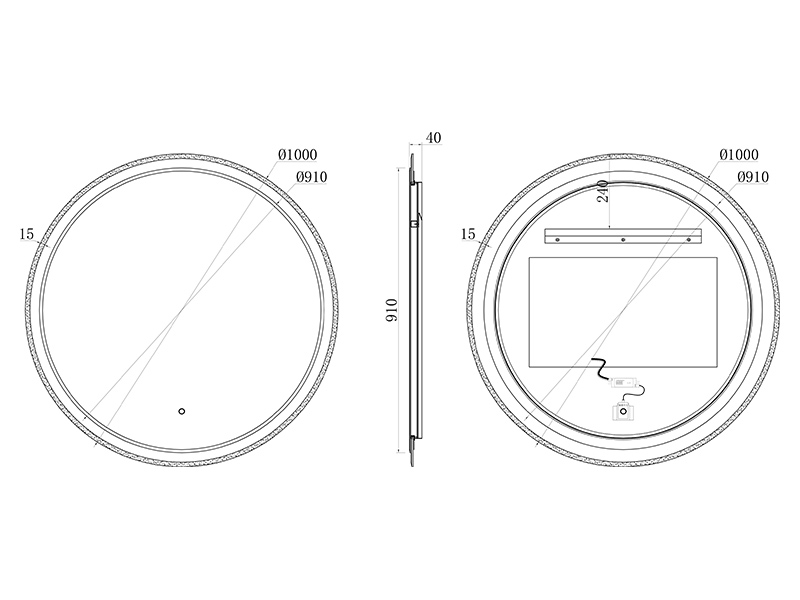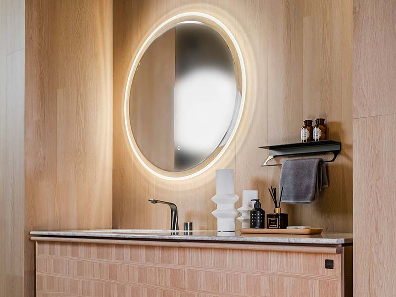 - Сенсорная система управления, которая позволяет сделать выбор цветовой температуры светодиодной подсветки зеркала: 2700K (теплый свет), 4000К (нейтральный свет), 6400K (холодный свет).