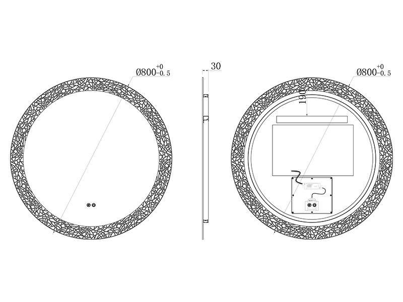 - Сенсорная система управления, которая позволяет сделать выбор цветовой температуры светодиодной подсветки зеркала: 2700K (теплый свет), 4000К (нейтральный свет), 6400K (холодный свет).