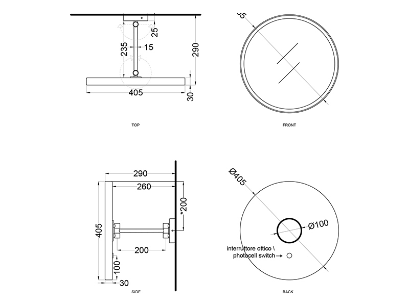 CIELO PLSPL CM PLUTO Зеркало круглое d40 c LED подсветкой и выключателем, цвет cemento.