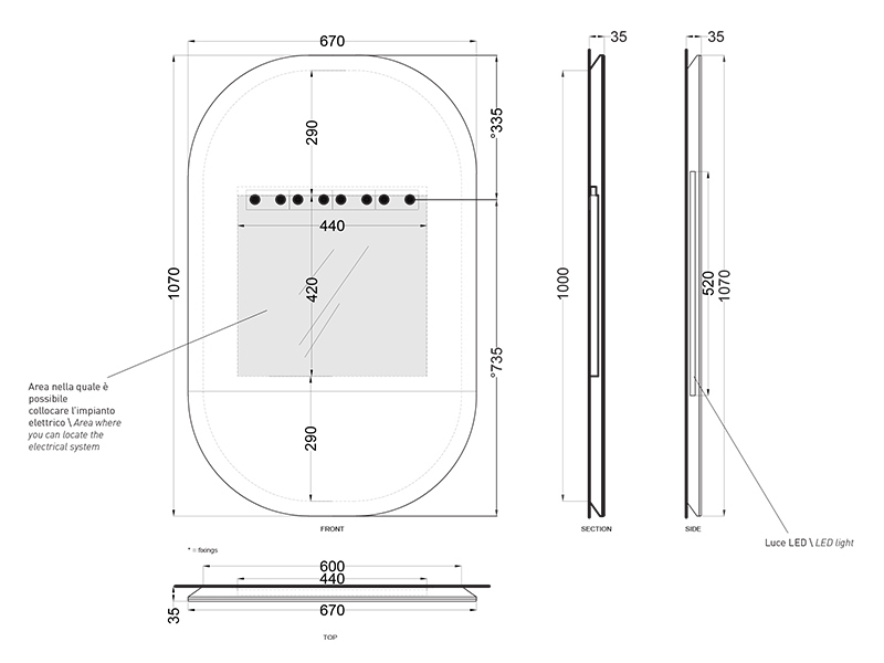 со светодиодной подсветкой без выключателя. Размеры:67x4x107h.