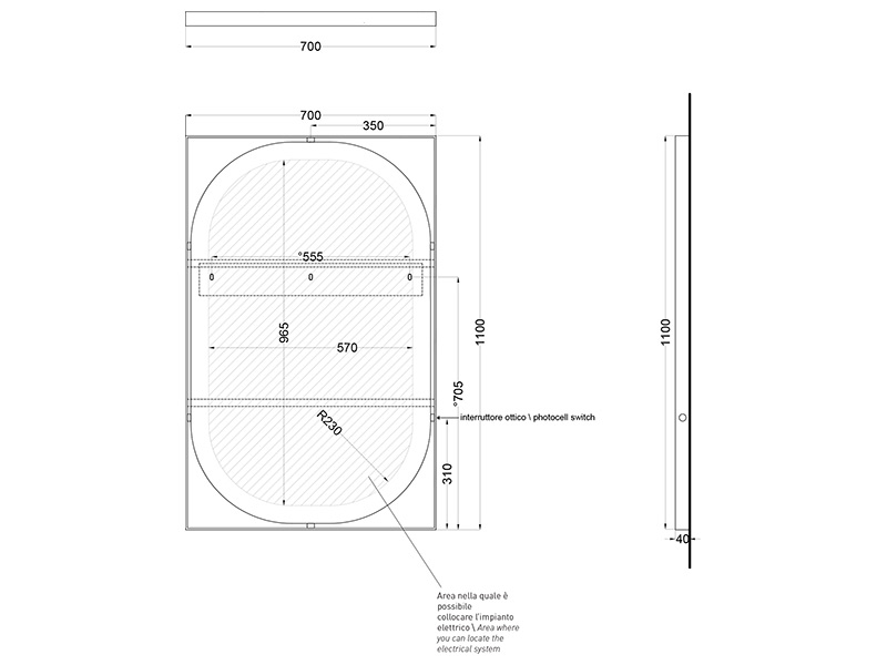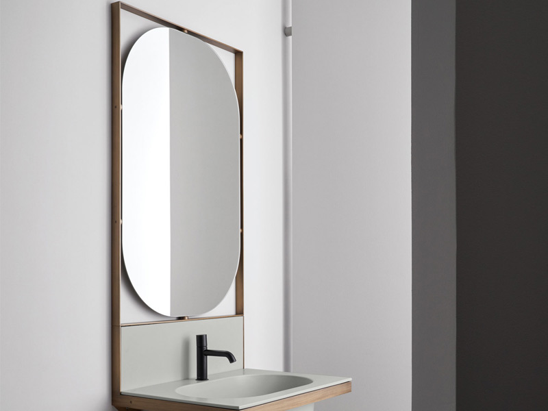 CIELO ELLE OVALE ELSPO Зеркало овальное в прямоугольной раме с LED подсветкой по периметру, цвет рамы Brushed Bronze.