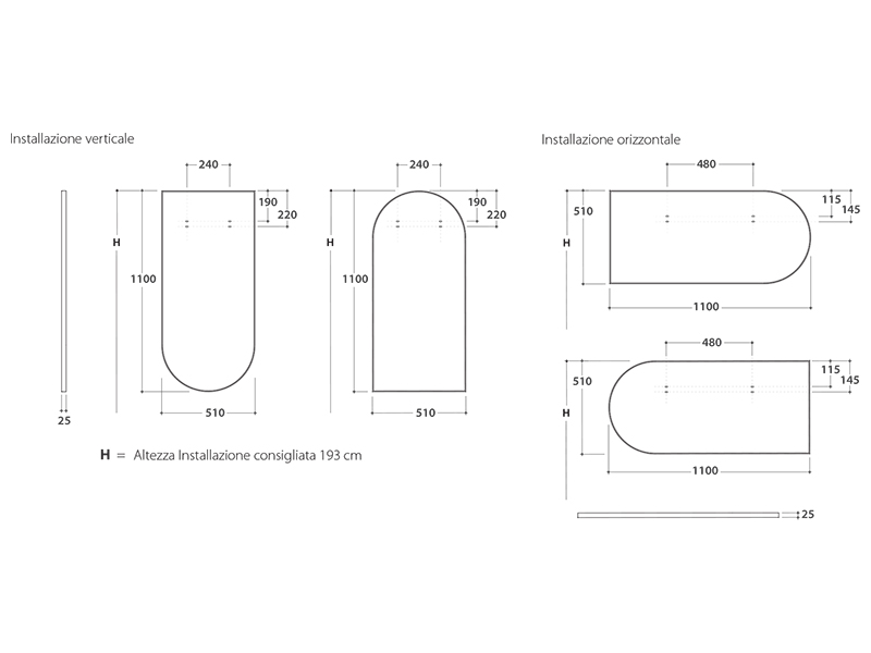 Зеркало горизонтальное или вертикальное, цвет matt black