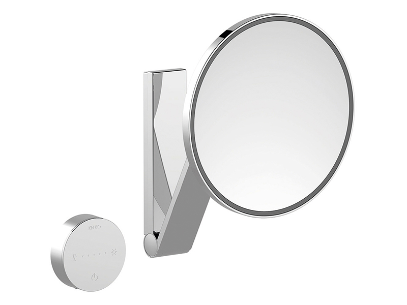 KEUCO ILOOK MOVE 17612019002 Зеркало косметическое с LED подстветкой. 5-уровневое переключение цвета подсветки от 2700 Кельвин (теплый белый) до 6500 Кельвин (дневной свет). Управление: стеклянная сенсорная панель и светодиодный индикатор, электрокабель интегрирован в поворотный кронштейн, настенная модель на кронштейне с шарниром, регулируется в трех плоскостях, одностороннее зеркало, вогнутое, коэфффициент увеличения x 5. Электроснабжение:подключение к сети через подрозетник,12 В встраиваемый сетевой блок питания. Напряжение на входе: 220-240 В, Потребление в режиме ожидания менее 0,5 Вт. Светодиод 4,5 Вт. Размеры: 31.8 x d212мм, Шарнир от стены 112-305мм. Цвет Хром.