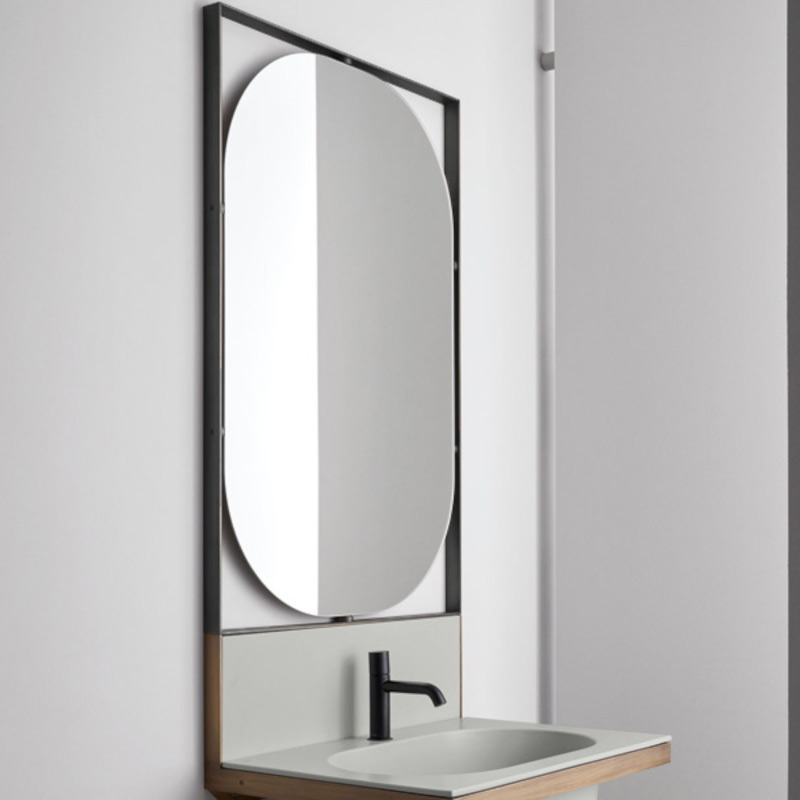 CIELO ELLE OVALE ELSPO Зеркало овальное в прямоугольной раме с LED подсветкой по периметру, цвет рамы Cemento.