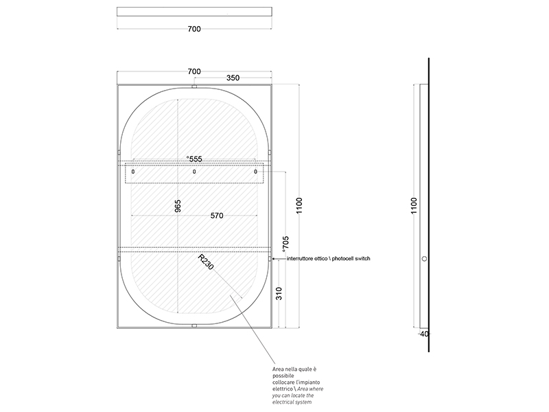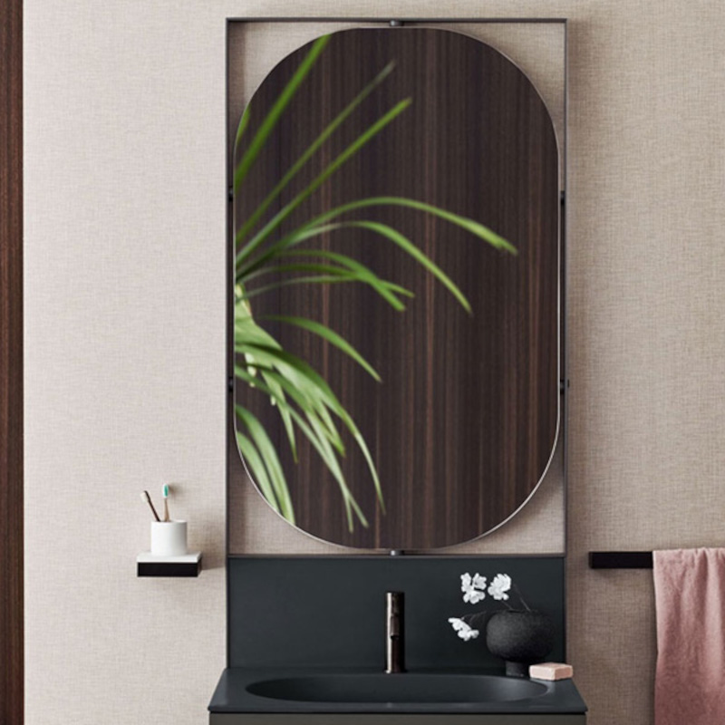 CIELO ELLE OVALE ELSPO Зеркало овальное в прямоугольной раме с LED подсветкой по периметру, цвет рамы черный матовый.
