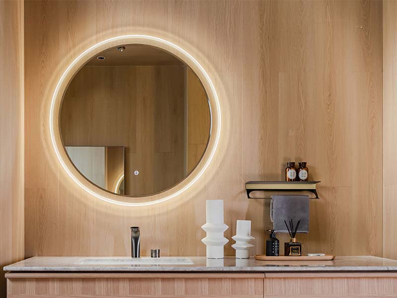 - Сенсорная система управления, которая позволяет сделать выбор цветовой температуры светодиодной подсветки зеркала: 2700K (теплый свет), 4000К (нейтральный свет), 6400K (холодный свет).