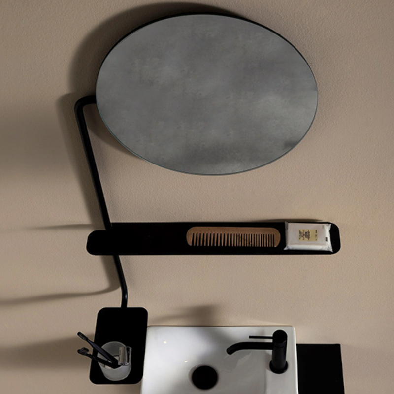 Это круглое зеркало с полкой для аксессуаров и подстаканником представляет собой сочетание элегантности и удобства. Черный матовый цвет придает зеркалу стильный и современный вид, который гармонично впишется в любой дизайн ванной комнаты. Оно создает лаконичный и минималистичный акцент, при этом обеспечивая удобство использования и хранения необходимых предметов.